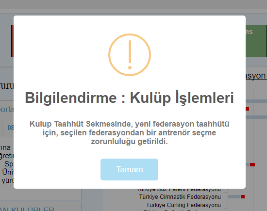 Gençlik ve Spor Bakanlığı Dinamik Sistemi üzerinden il müdürlüklerine yaptığı duyuru ile Kulüplerin yeni Federasyon Taahhütlerinde, seçilen federasyona bir antrenörün girişi zorunlu oldu. Artık kulüpler branş taahütü yaparken birde antrenör bildirmek zorundalar.